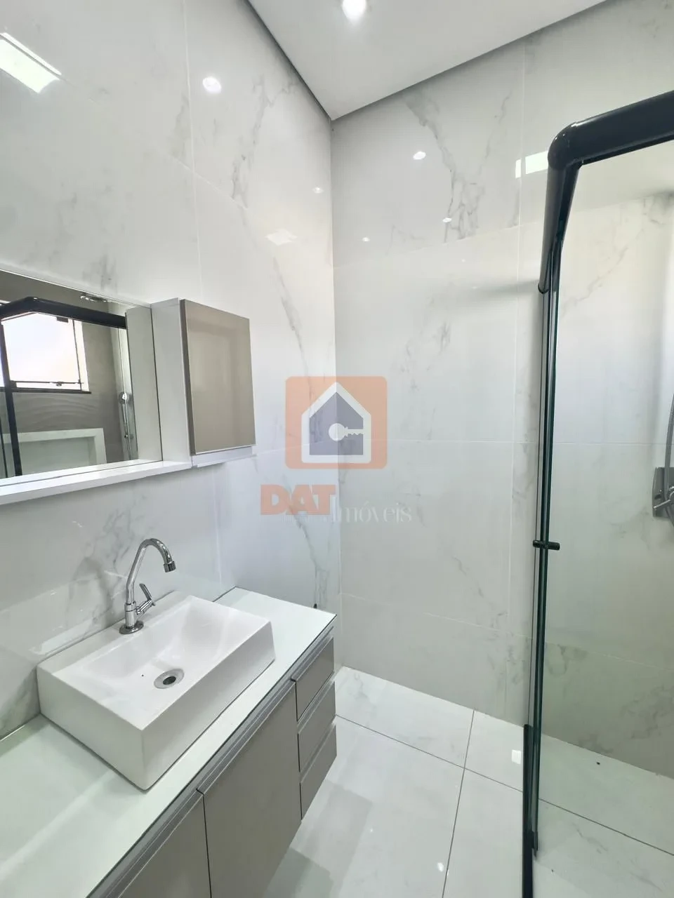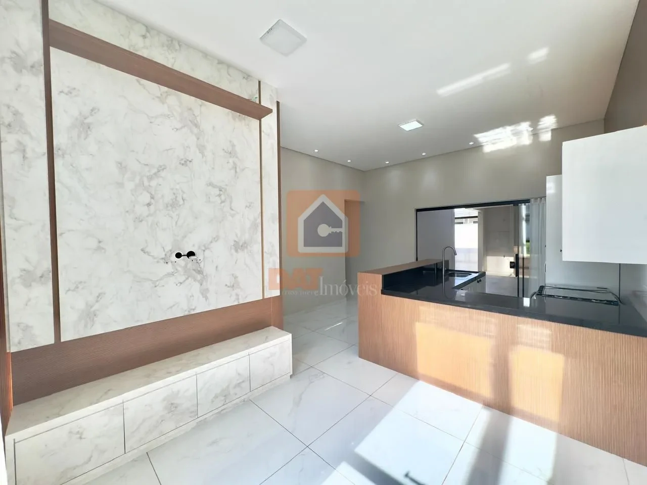 Piso em porcelanato, garantindo sofisticação e fácil manutenção