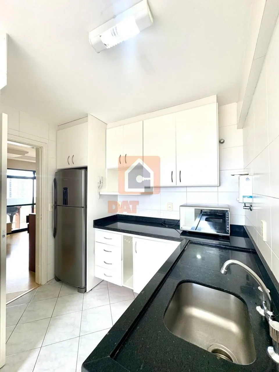 Cozinha com móveis planejados e eletrodomésticos;