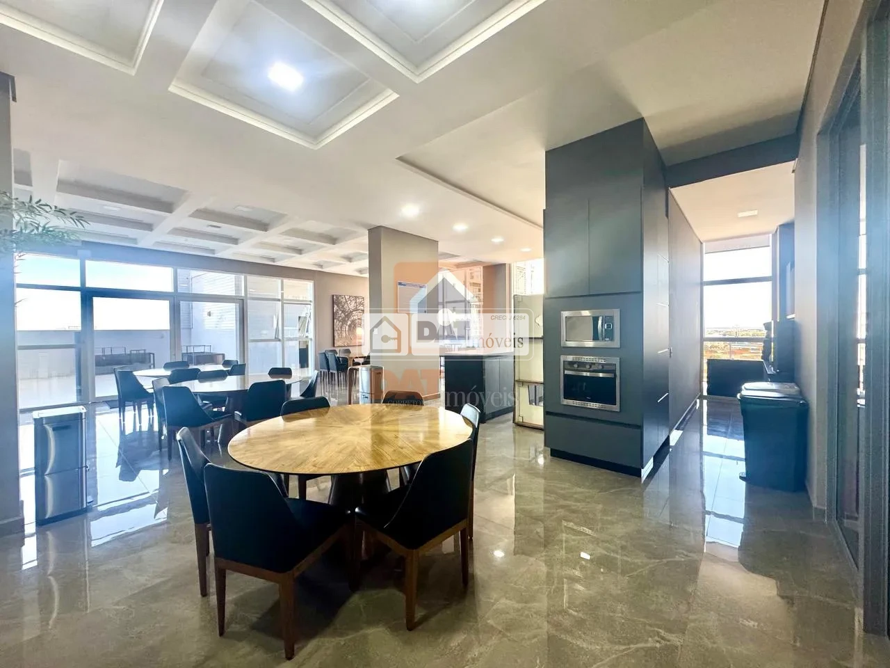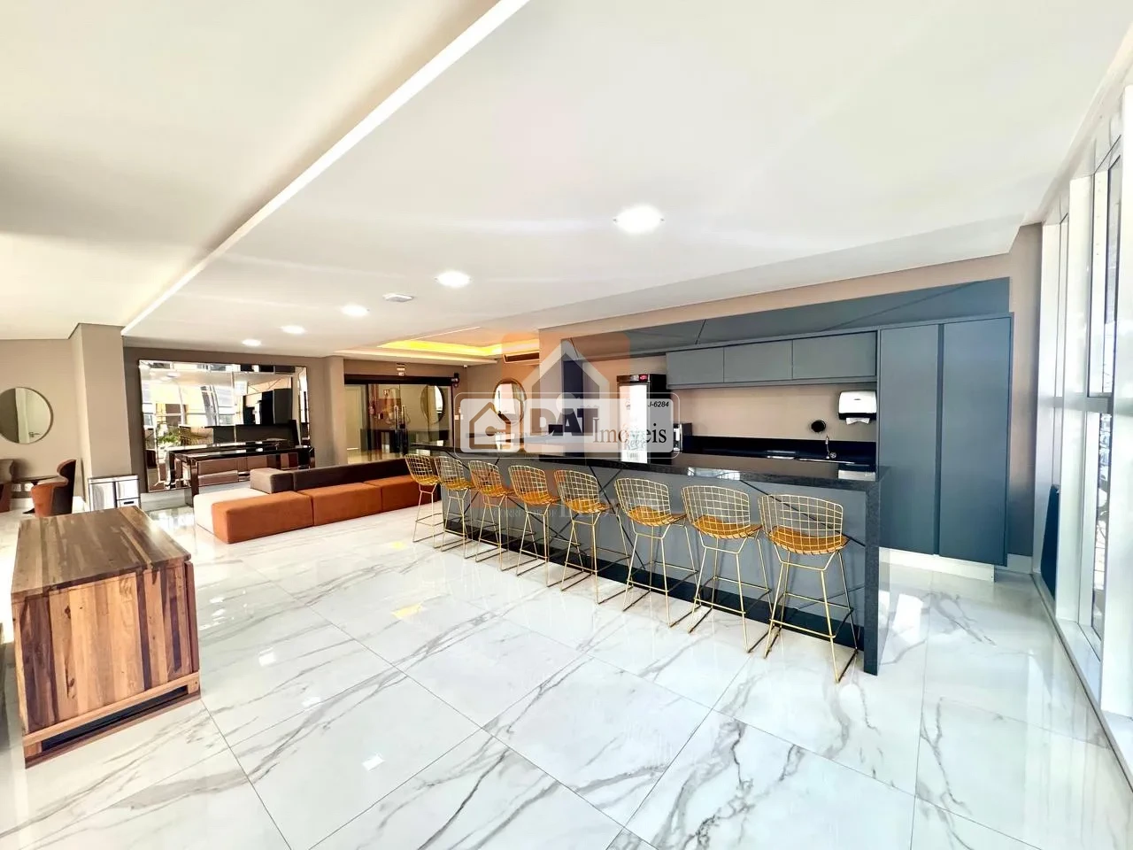 Salão de festas com espaço gourmet,