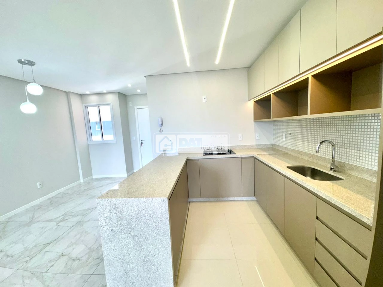 Cozinha com armários planejados e cooktop;