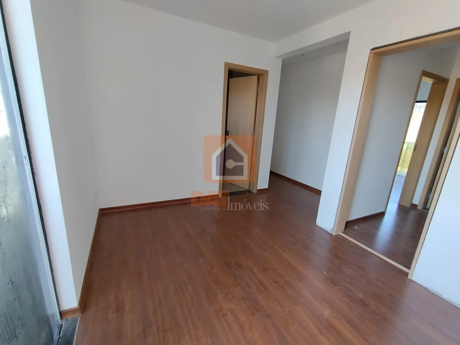 Piso laminado nos quartos e porcelanato no andar inferior.
