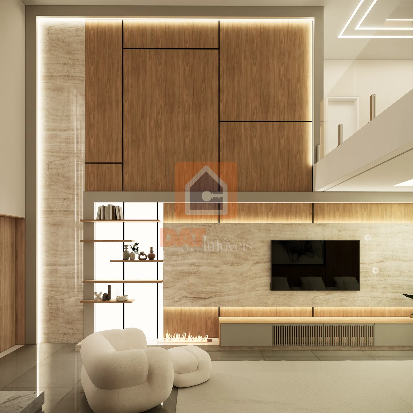 Piso Superior: Sala íntima, 2 Suítes, 2 delas com sacada. A Suíte-Máster possui closet, sacada privativa e banheira de imersão com excelente vista para o condomínio!