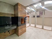 A sala para dois ambientes, com lareira, é um convite para desfrutar de momentos aconchegantes;