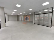 Área térrea: entrada lateral com porta automatizada, teto com forro modular suspenso, iluminação indireta, bom isolamento térmico e acústico, sala ampla com área de 120 m², 2 banheiros e copa